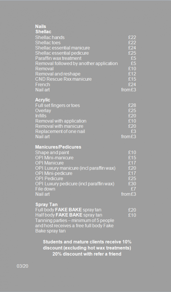 With that in mind I look forward to welcoming you to No 1 Nails and Beauty. Always remember to check for my latest offers on Instagram.